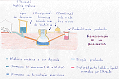 O Biodigestor é um equipamento que reaproveita os resíduos para produzir gás. O gás é liberado a partir da decomposição, feita por certas bactérias de esterco, bagaço de vegetais, palha e mesmo de lixo depois da separação dos elementos inutilizáveis, como vidro e plástico.