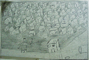| Hoje, na nossa sociedade, há muitos casos de adensamento populacional. Há casas que são mal feitas, e com bastante risco de desabamento. Casas que são construídas de madeira, uma em cima da outra, sem higiene alguma. Casas localizadas em lugares com difíceis problemas de saneamento básico, como: água encanada, esgoto, transporte. O esgoto é um problema que causa muitas doenças. Pois não há um encanamento, o esgoto e isso vai direto para o rio, causando enchentes e perdas de muitas moradias. O transporte é muito difícil para as pessoas.... É muito longe e não há estradas, ruas para a passagem dos carros, ônibus. Falta água encanada para os moradores, pois muitos fazem ligações de outro amigo do lado. Não há um lugar que seja adequado, não há uma moradia boa para esses moradores. Temos que falar, gritar, pois o governo tem que prestar serviço a essas pessoas que verdadeiramente necessitam. Autoras: | ||||