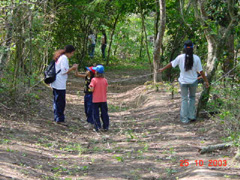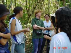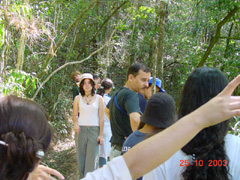 Para leigos, aquelas árvores de troncos tortos com casca grossa, cercadas de muitas gramíneas, podem parecer, à primeira vista, uma vegetação pobre em biodiversidade. É prestando atenção nos detalhes, que se percebe a riqueza ecológica deste ecossistema, hoje considerado pelos cientistas como um dos mais ricos em biodiversidade no País. Numa trilha de baixa dificuldade, os estudantes passaram por um trecho de Cerrado, para desembocar numa mata ciliar, que protege um cursos d'água, assim como cílios protegem nossos olhos. Até o clima muda.