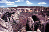 O Parque Nacional da Serra da Capivara, com 130 mil hectares, é uma destas unidades de conservação. Administrado por uma parceria entre a Fundação do Homem Americano (Fumdham) e Ibama – hoje ameaçada pela falta de verba -, ele protege uma das mais importantes áreas arqueológicas das Américas, e seu entorno, num raio de 10 km. Além de ter recebido o título de Patrimônio Cultural da Humanidade, da Unesco, a área pode se tornar também Patrimônio Natural da Humanidade. Uma de suas atrações naturais é o Baixão das Andorinhas. No fim da tarde, turistas espantam-se, observando estas aves. É que elas alcançam seus ninhos, encravados em buracos das formações rochosas, voando a 120 km por hora. (Fotos: Arquivo Fumdham/2001) | |||||||||||||||||||